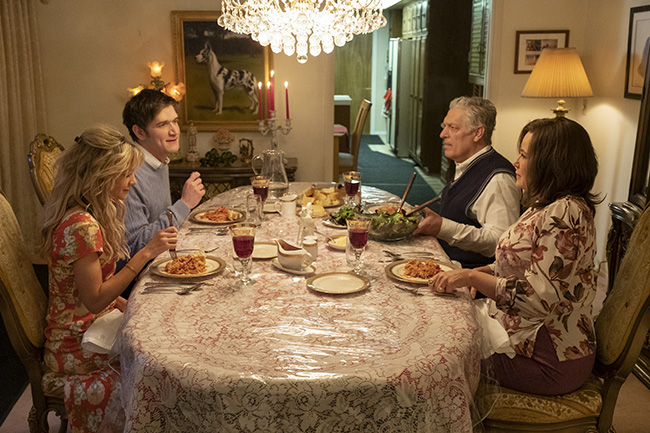 On aime aussi l’esthétique marquée du film, très pop et un peu années 50 (le générique est rose), comme ce coffee shop aux tons pastels et aux muffins colorés. Cassie vit toujours chez ses résignés parents, Clancy Brown et Jennifer Coolidge, dans un univers savamment mis en scène. Les cadrages y sont toujours les mêmes, fixes, pour souligner cet univers confiné lors des petits déjeuners. L’univers familial semble sclérosé dans le passé et l’on sentirait presque les odeurs vieillotes des anciens meubles rococo. La formidable décoration est imaginée par Nancy Steiner. La bande son du film d’Anthony Willis, une réussite, joue avec la musique du cinéma de genre américain. On pense notamment à la musique chez Hitchcock dans les moments de tension extrême, qui évoque le suspense et créée toute la tension des chefs-d’œuvre du maître.