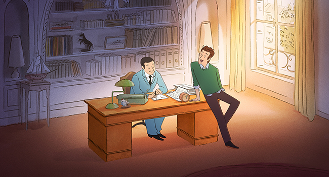 S’il faut souligner la mise en animation de ce long métrage qui s’embarque dans les pas des auteurs en respectant le style et le trait, c’est bien dans le scénario que se situe la magie. La gouaille du petit Nicolas et sa curiosité quant à connaitre la vie de ses créateurs est une idée de génie. Elle donne lieu à des entretiens intimes en toute confidence auquel aucun journaliste ne serait parvenu. Ici c’est Nicolas qui pose les questions et les auteurs sont autant en confiance qu’en intimité. Procédé furieusement ingénieux du duo de cinéastes.