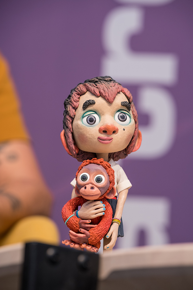 Pour revenir à ces petits personnages, comment les marionnettes sont-elles conçues ? Avec beaucoup d’amour et de patience (rires). Au départ ce sont des dessins. Je fais beaucoup de dessins au trait, assez simples pour trouver les caractères. Ensuite je mets tous les dessins ensemble parce qu’il faut qu’ils fonctionnent également entre eux, les proportions, les formes. Puis on fait la sculpture en pâte à modeler et à partir de là, j’ai une équipe de trente à quarante personnes qui travaillent pendant un an à partir de la sculpture pour créer les marionnettes. Il a fallu cette équipe-là pour faire une centaine de marionnettes. Kéria existe en douze exemplaires pour pouvoir travailler en parallèle sur divers moments du film sur plusieurs plateaux. À l’intérieur il y a une armature en acier avec des rotules que l’on peut régler pour chaque scène, des petits costumes en tissu avec des petites armatures pour être aussi animés, pour que ça bouge. Les cheveux sont en mousse de latex, les têtes en impression 3D, les bouches sont aimantées, on peut les remplacer. On filme ensuite en Stopmotion, à 12 images par secondes.